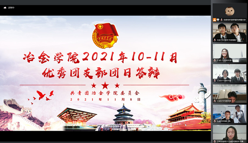 11月8日,冶金学院线上开展2021年10-11月“赓续红色血脉,厚植家国情怀”主题团日答辩活动。学生工作办公室辅导员老师,团委学生干部及答辩团支部评分代表参加本次活动。