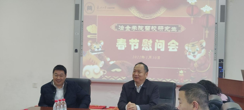 爆竹声中一岁除,春风送暖入屠苏。在新春佳节即将到来之际,冶金学院于1月30日上午,在冶金学院311B室举行留校研究生春节慰问会。冶金学院党委书记张耀伟、院长刘承军、学院在沈的学生工作干部以及30余名留校研究生欢聚一堂,喜迎虎年的到来。