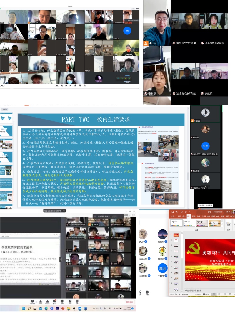 近日,为贯彻落实上级部门和学校学院关于疫情防控工作部署要求,进一步加强校园封闭管理期间本科生的教育管理工作,拉紧全员育人共同纽带,学院64位本科生班导师第一时间响应学院党委号召,认真落实工作要求,分别面向所负责班级的全体学生和家长召开了线上班会。班导师在会上传达了学校疫情防控要求,并针对不同年级、不同专业特点指导学生开展校园封闭管理期间的学习生活。