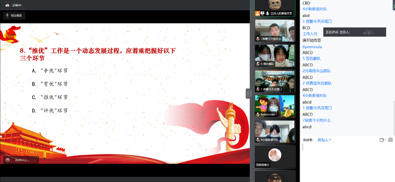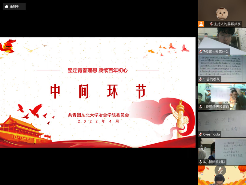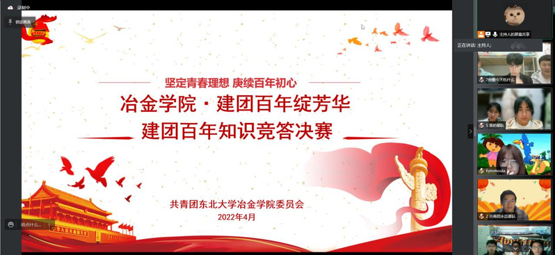 冶金学院团委于4月1日线上举办“建团百年绽芳华”系列活动之团史知识竞答决赛,共有43支队伍参加比赛,7支队伍晋级决赛。