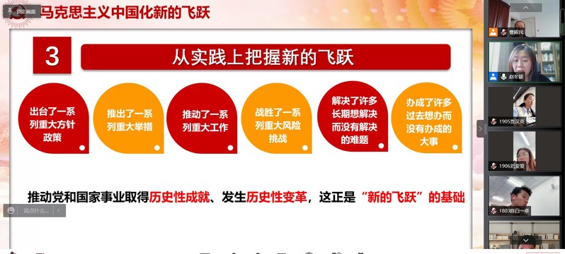 赵冬颖老师用生动的语言和丰富的内容得到了与会党员的一致共鸣,并就“马克思主义中国化三次飞跃”组织交流讨论,促进了学与思的结合,引导党员进一步深入学习党的光辉历史、领会党的创新理论。