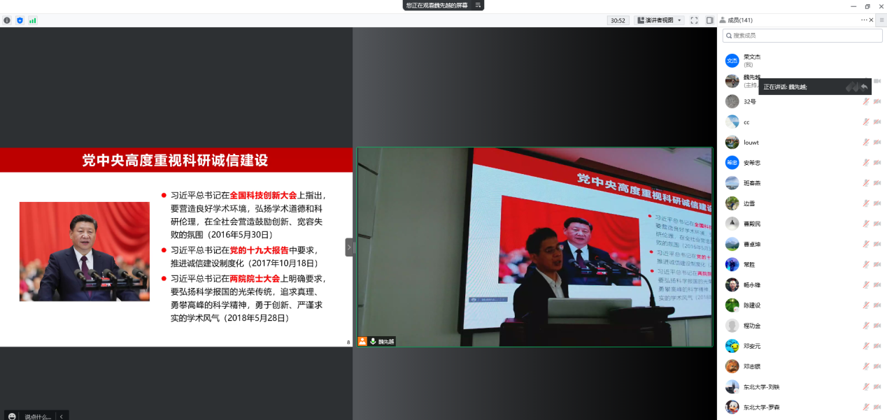 学院党委副书记、纪委书记储满生作《恪守学术道德 牢筑科研诚信》的主题报告,从恪守学术道德的要求、学术不端的界定与处理及典型案例、如何筑牢科研诚信几个方面开展警示教育,希望全体师生尤其是教职员工能够针对反面案例引以为戒,进一步树新风正气、涵养优良师德。