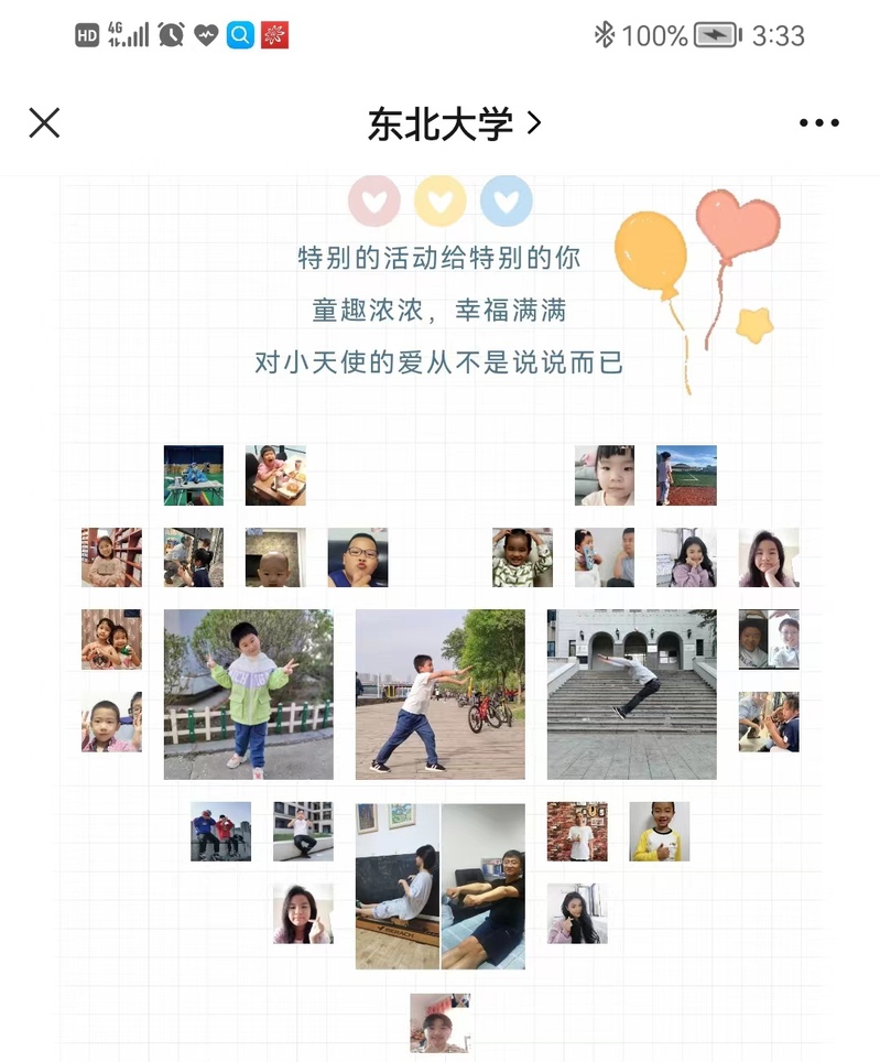 5月末,学院工会承办了东北大学“时光静好,陪你成长”庆祝六一儿童节主题活动,活动分为“愿言思子、爱意书信”“云上互动,空中接力”“暖声相伴,共享时光”三个板块,驻校70余名教工及家庭参与了此次活动,学校官微进行了专题报道。