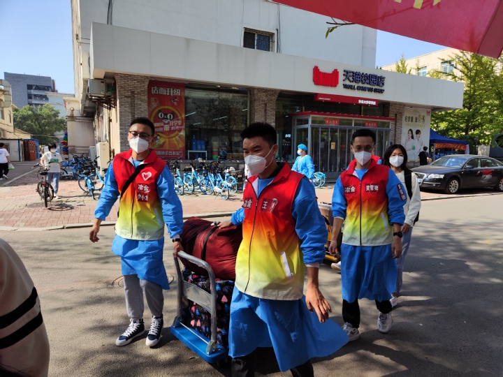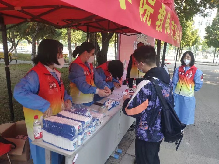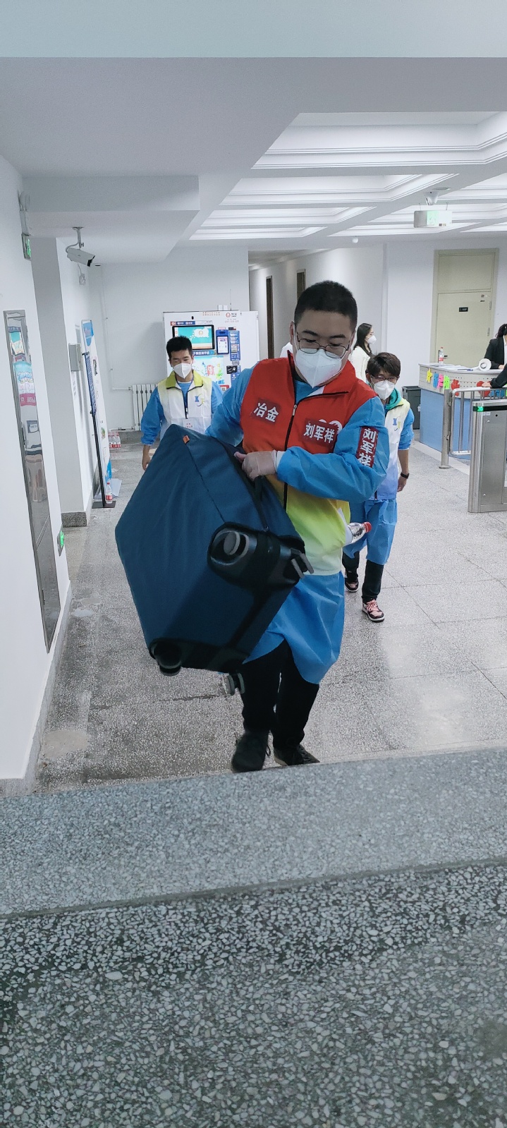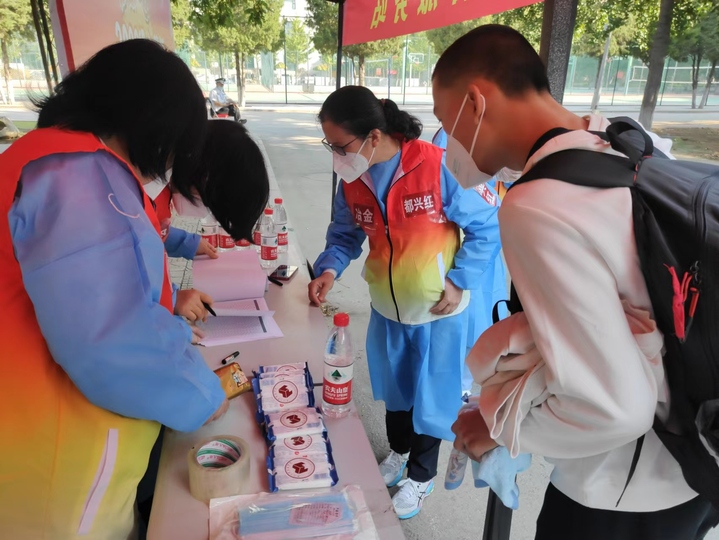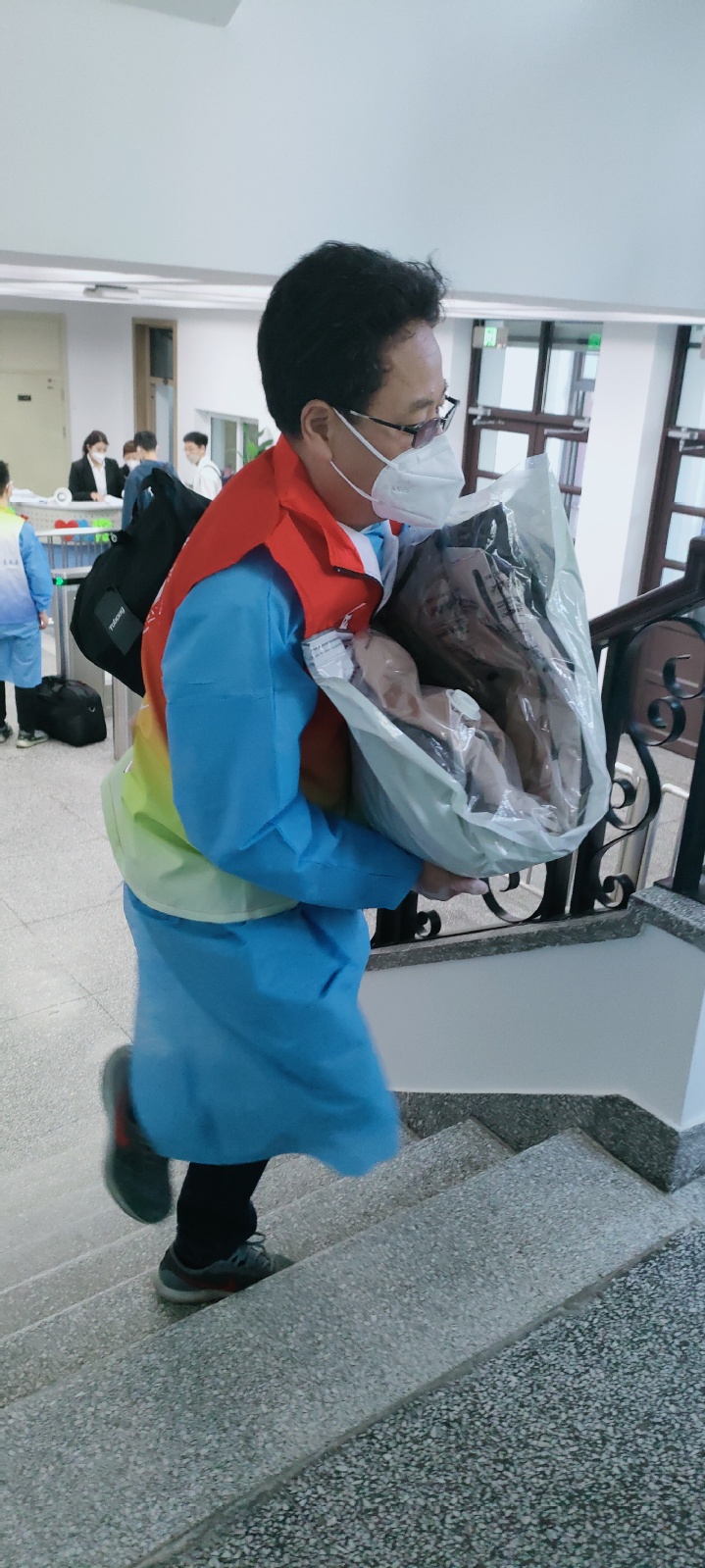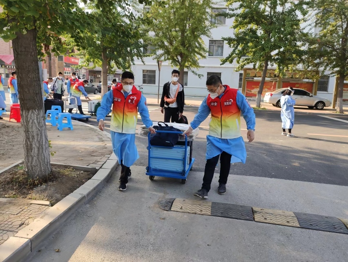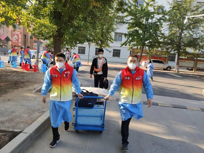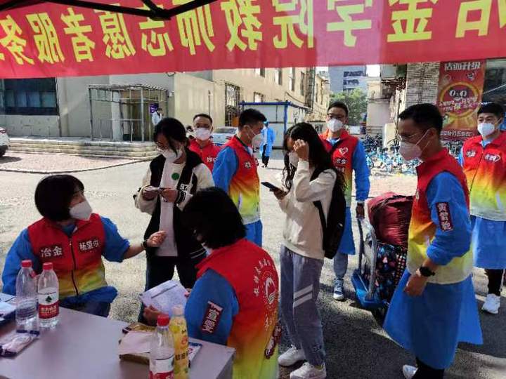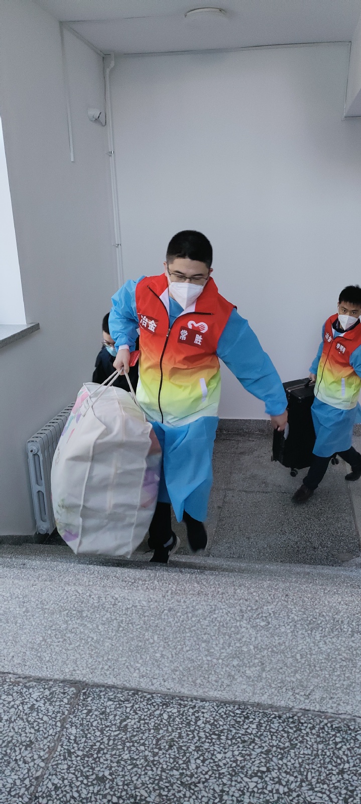 学院教师志愿者中,1人校内核酸检测,2人校内车辆接驳及静默学生生活物资保障,4人投入机场迎新接站,60人次校内站点接站、登记及行李搬运等工作。他们中有59岁的党员教师,有40岁的青年骨干,也有30岁的年轻新锐,尤其是新生班导师全员参与志愿服务,他们一心一意,温情传递,只为能把所有同学接回家!
