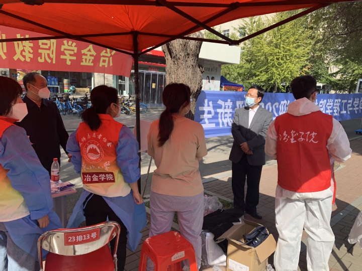 9月28-29日,在东北大学返校迎新工作中,冶金学院67人次教师志愿者连续奋战,圆满完成了志愿服务工作。学校党委书记熊晓梅,副校长唐立新、王强、王辉看望慰问了学院迎新志愿者。