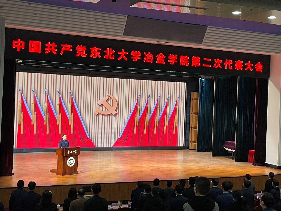 学院党委书记张耀伟代表中国共产党东北大学冶金学院上一届委员会作题为《坚持内涵建设 聚力改革创新 为开创冶金学院党的建设和事业发展新局面而努力奋斗》的工作报告。报告总结了学院第一次党代会以来的工作回顾、今后努力的方向以及下一步的重点工作,号召全体党员和师生踔厉奋发,勇毅前行,用奋斗拥抱新时代,用实干开启新征程,以优异成绩庆祝东北大学建校100周年、为学校“一流大学”建设和国家发展贡献力量。