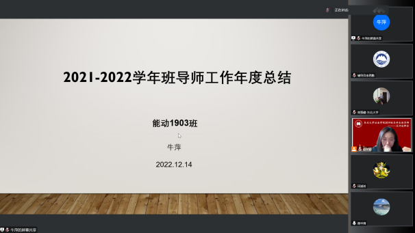 会上,各位班导师围绕2021-2022学年特色工作和日常工作展开述职,主要从思想引领、安全管理、疫情防控、班级文化建设、学业指导以及重点群体帮扶等方面内容对本学年各项工作进行总结汇报。