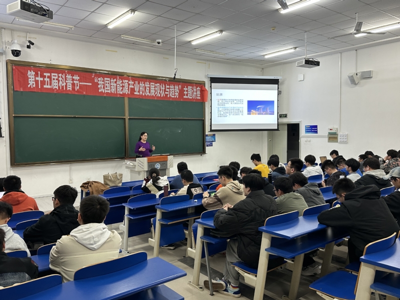 本期讲座主要围绕我国新能源产业相关科普知识展开,以时下最热的风能、光能、核能三种能源形式切入,从利用原理、产业化程度、整体发展状况等多方面进行介绍,帮助同学们对我国新能源产业发展现状与趋势建立了更进一步的认识。讲座最后,都兴红老师鼓励同学们认真学习专业知识,努力提升自身本领,未来在所学专业领域能够大展宏图,贡献一份属于自己的青春力量。