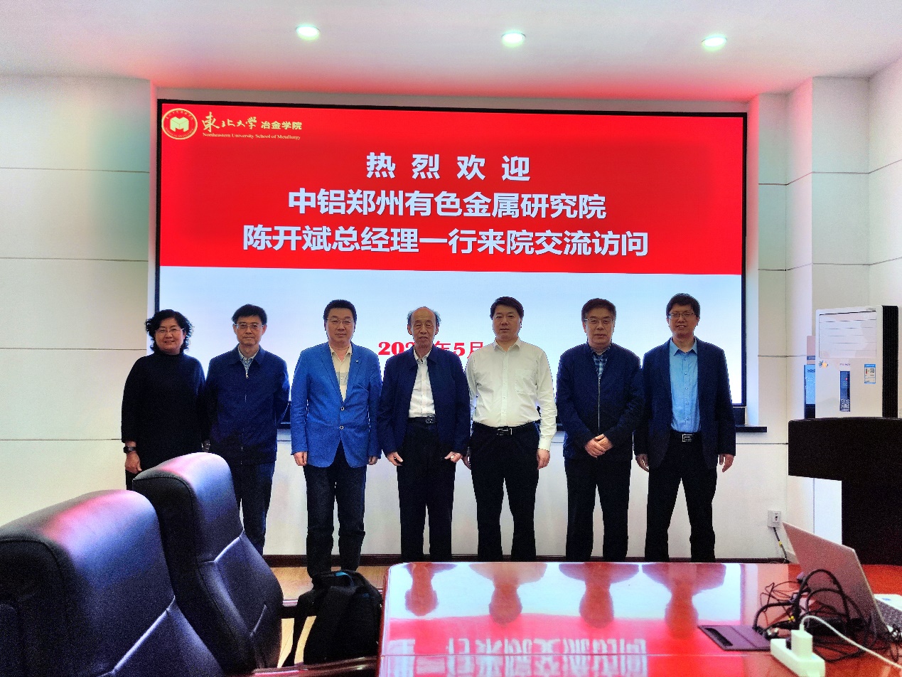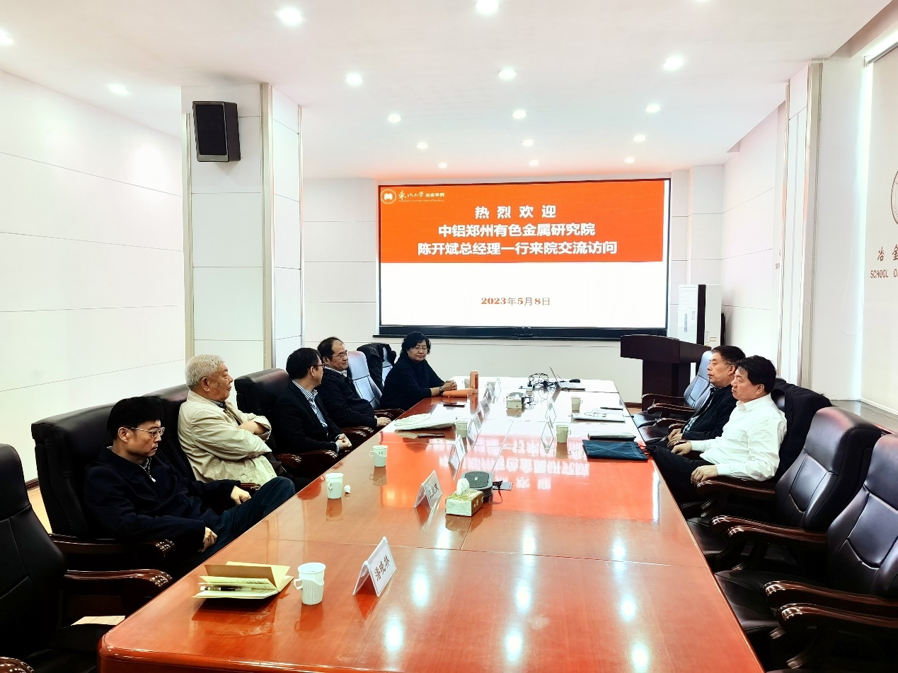 5月8日,“中铝郑州有色金属研究院有限公司-东北大学交流会”在冶金学馆301室召开。中铝郑州有色金属研究院有限公司(以下称郑州研究院)党委副书记、总经理陈开斌,中国有色金属学会轻金属冶金学术委员会秘书长赵清杰,中国工程院院士王国栋,冶金学院院长刘承军、党委书记张耀伟、副院长石忠宁及相关方向负责人出席会议,会议由刘承军主持。