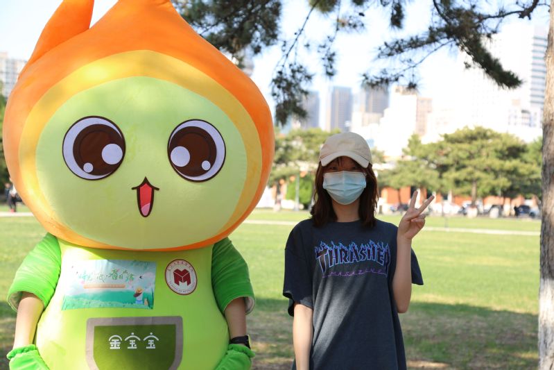 学院吉祥物“金宝宝”会随机出现在某个点位,与金宝宝合影将获得一个隐藏印章,能够额外抽取一次奖品。同学们在校园里四处寻找着“金宝宝”,留下了美好的回忆。