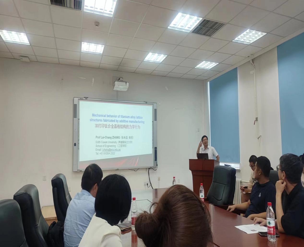 7月11日,为庆祝东北大学建校100周年,冶金学院在冶金馆311B会议室举办东北大学“百年校庆大讲堂”——“冶金之光”学术报告会。应冶金学院先进亚稳金属材料研究中心邀请,张来昌教授和贾喆教授为全校师生分别作3D打印钛合金晶格点阵结构的力学行为、高熵合金结构设计与电解水催化功能特性研究专题报告,本次报告由张海峰教授主持。