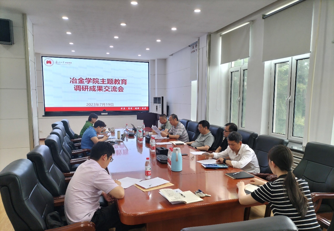 7月19日,冶金学院在冶金馆301会议室召开主题教育调研成果交流会。冶金学院领导班子、材料电磁过程研究教育部重点实验室班子成员参加会议。会议由学院党委书记张耀伟主持。