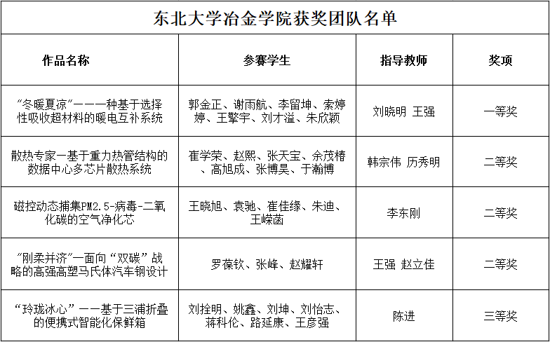 据悉,全国大学生节能减排社会实践与科技竞赛是由教育部高等学校能源动力类专业教学指导委员会指导,全国大学生节能减排社会实践与科技竞赛委员会主办的大学生课外科技作品和社会实践调查竞赛。该竞赛是全国普通高校学科竞赛排行榜认定的重要竞赛之一,已成为全国高校能源动力领域最具影响的赛事之一,具有较大的社会影响力,也是《东北大学学生创新创业竞赛星级分类表》认定的六星级高水平竞赛。