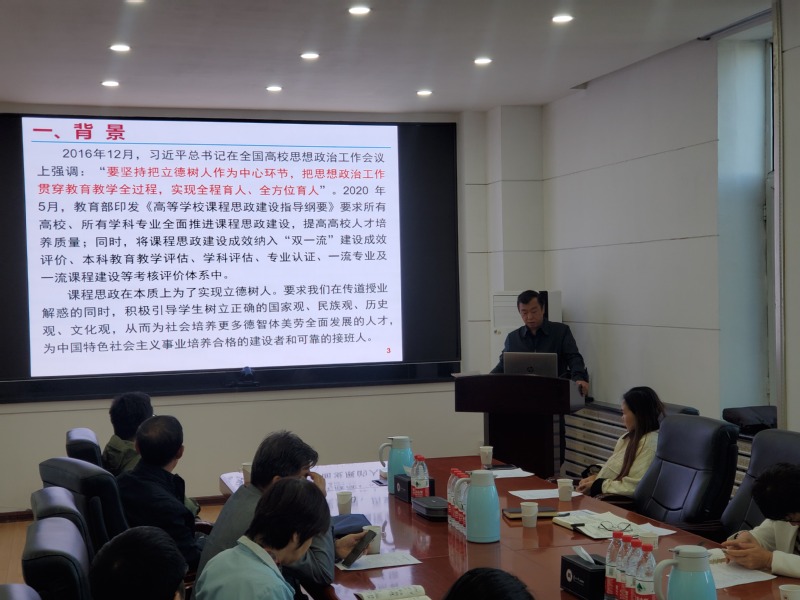 首先,张耀伟带领参会人员深刻学习了全国高校思政工作会议精神。立德树人是教育的根本任务,教师要做有理想信念、有道德情操、有扎实学识、有仁爱之心的“四有”好老师,学生要做有理想、有道德、有文化、有纪律的“四有”新人。教师讲授课程思政切忌两张皮,不能生搬硬套,思政元素要与专业知识融合,做到润物细无声。各课程组应经常研讨,在教学过程中做到“潜心治学”,不断提升教学水平。