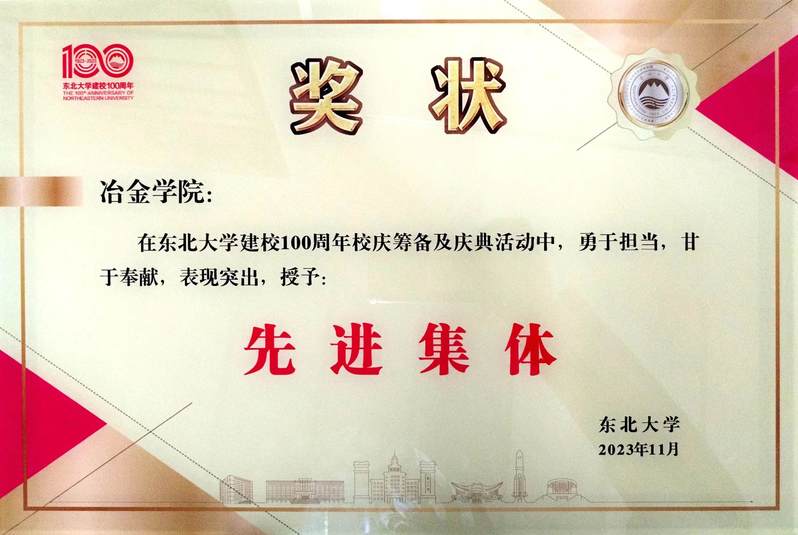 冶金学院庆祝东北大学建校100周年校庆工作,紧紧围绕“师生校友为主体”和“学术活动为中心”两大特色,经过两年半的筹备组织和实施,在校院领导的指导下,在广大校友的关心和支持下,在全院师生的积极参与和共同努力下,取得了圆满成功。通过校庆,对学院、学科的发展历程进行了梳理和总结,进一步提炼了冶金精神,凝聚了师生人心,营造了良好的学术氛围和文化氛围,提高了学科的知名度,为学院和学科的发展创造了条件。