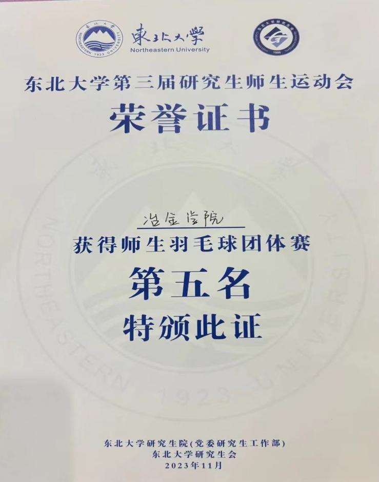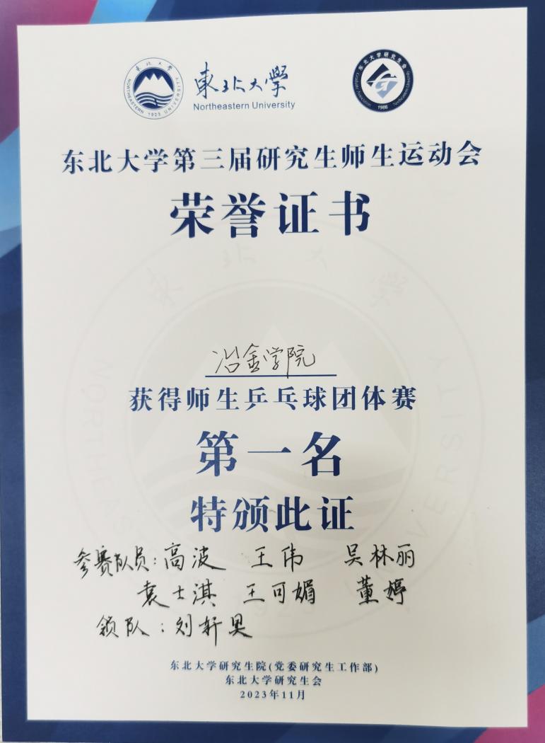 本次比赛冶金学院研究生师生广泛参与,踊跃报名,赛场上敢打敢拼,最终我院师生代表队取得乒乓球赛第一、羽毛球赛第五的好成绩。