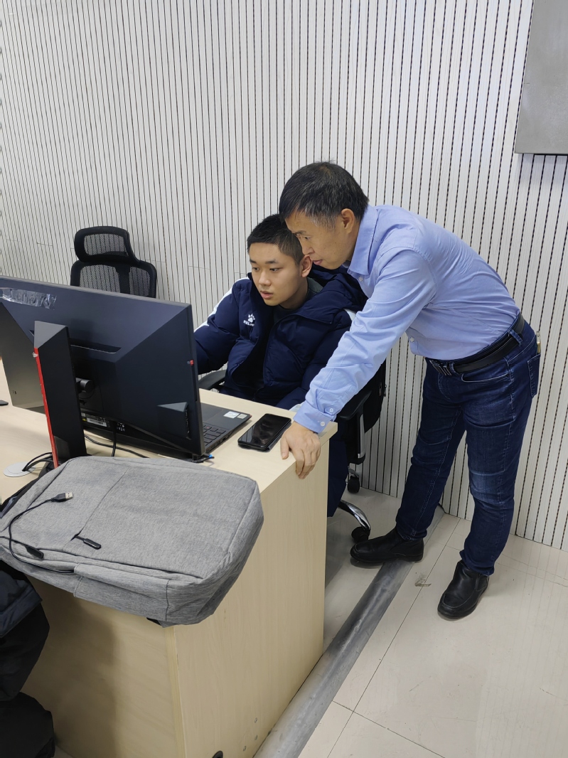 在大赛进行过程中,战老师现场进行指导,与同学们共同分析问题、探讨思路。在短短的25小时里同学们集思广益、激烈讨论,对炼钢方案精益求精。步步毫无差错的精密操作,正是矢志不渝炼得真钢的必要条件。