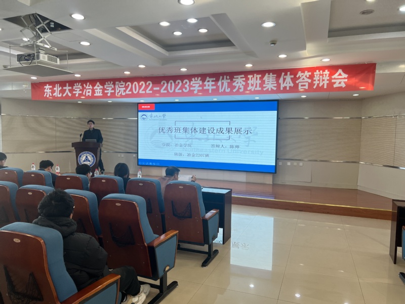 为引领学生自觉践行“自强不息·知行合一”校训精神及“求真·笃实·创新·发展”院训精神,冶金学院于12月12日在知行楼634会议室举办2022-2023学年本科生优秀班集体答辩会。本次答辩会由冶金学院学生工作办公室主办,2021级本科生年级会承办,学院共16个班集体参与答辩,学院全体本科生辅导员参加。