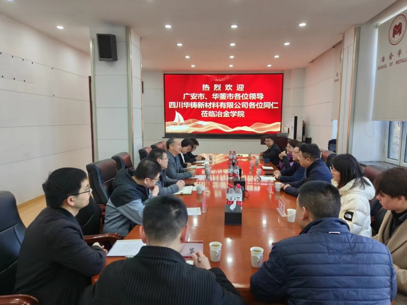 3月13日,四川省广安市人大常委会副主任、华蓥市委书记王山,四川华铸新材料有限公司董事长马超等一行9人到访冶金学院。