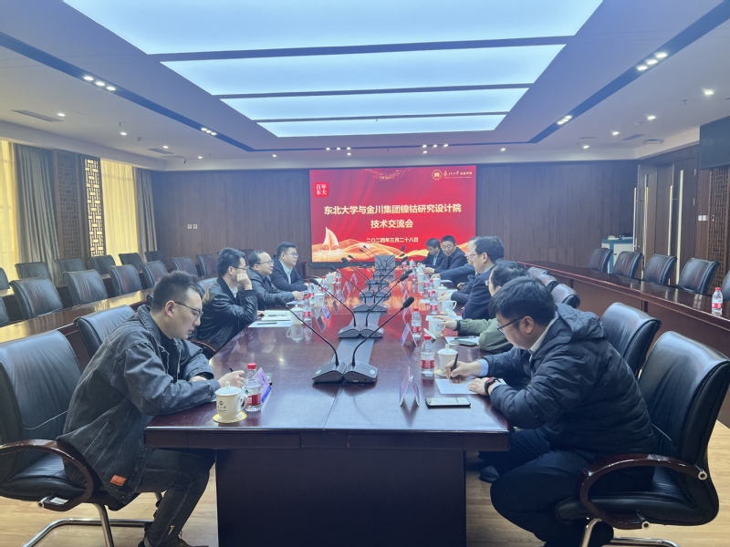 3月28日,“东北大学与金川集团镍钴研究设计院技术交流会”在汉卿会堂308室召开。金川集团镍钴研究设计院院长暨镍钴共伴生资源开发与综合利用全国重点实验室副主任马玉天、金川集团镍钴院金属材料研究所所长卢苏君一行4人,东北大学冶金学院党委书记张耀伟、副院长李花兵及相关领域教授、专家出席会议。
