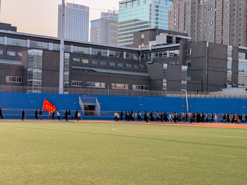 看,同学们向前的眼神多坚定;听,同学们踏出的步伐多有力。他们每一步的踏出,都是对生命的礼赞,对未来的期许。迎着晨光奔跑,看朝阳缓升,听飞鸟清鸣。