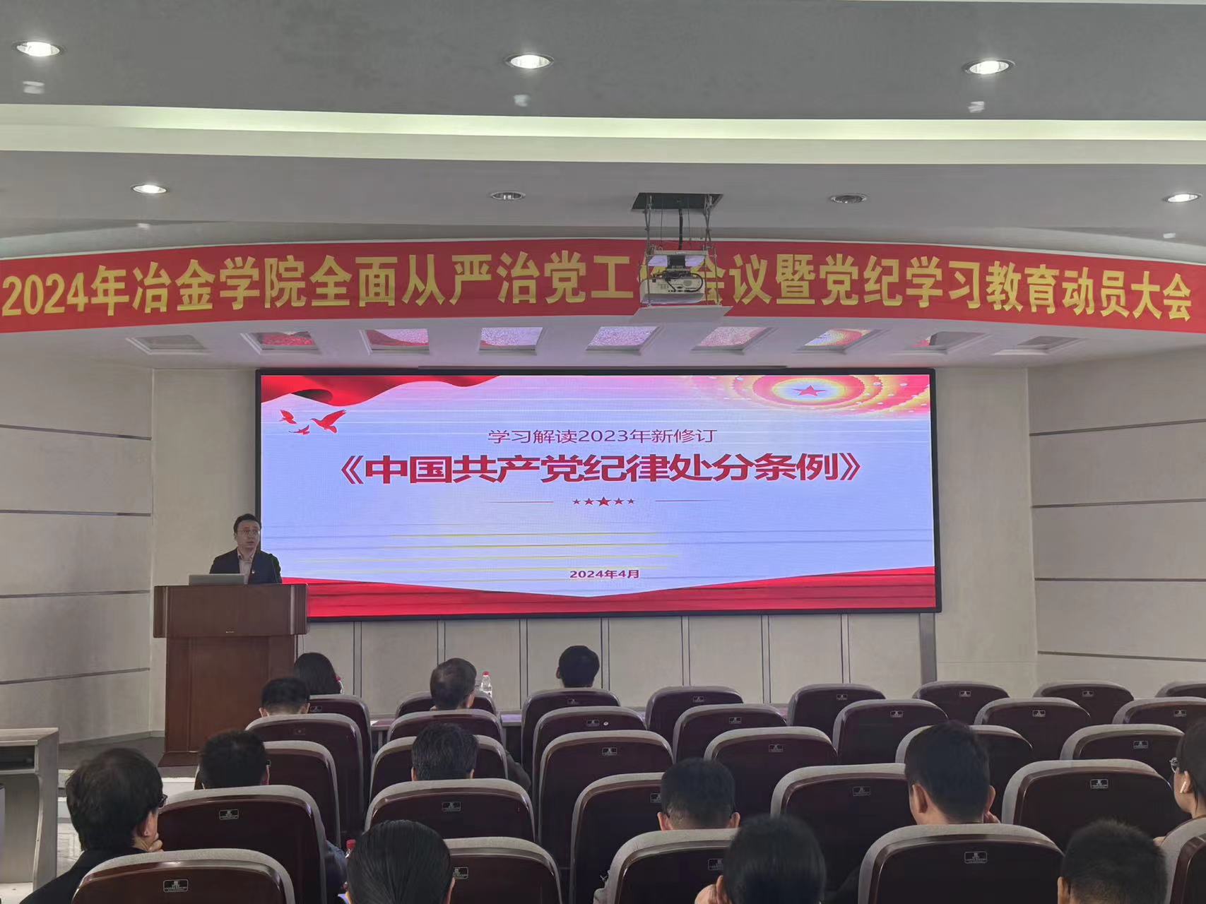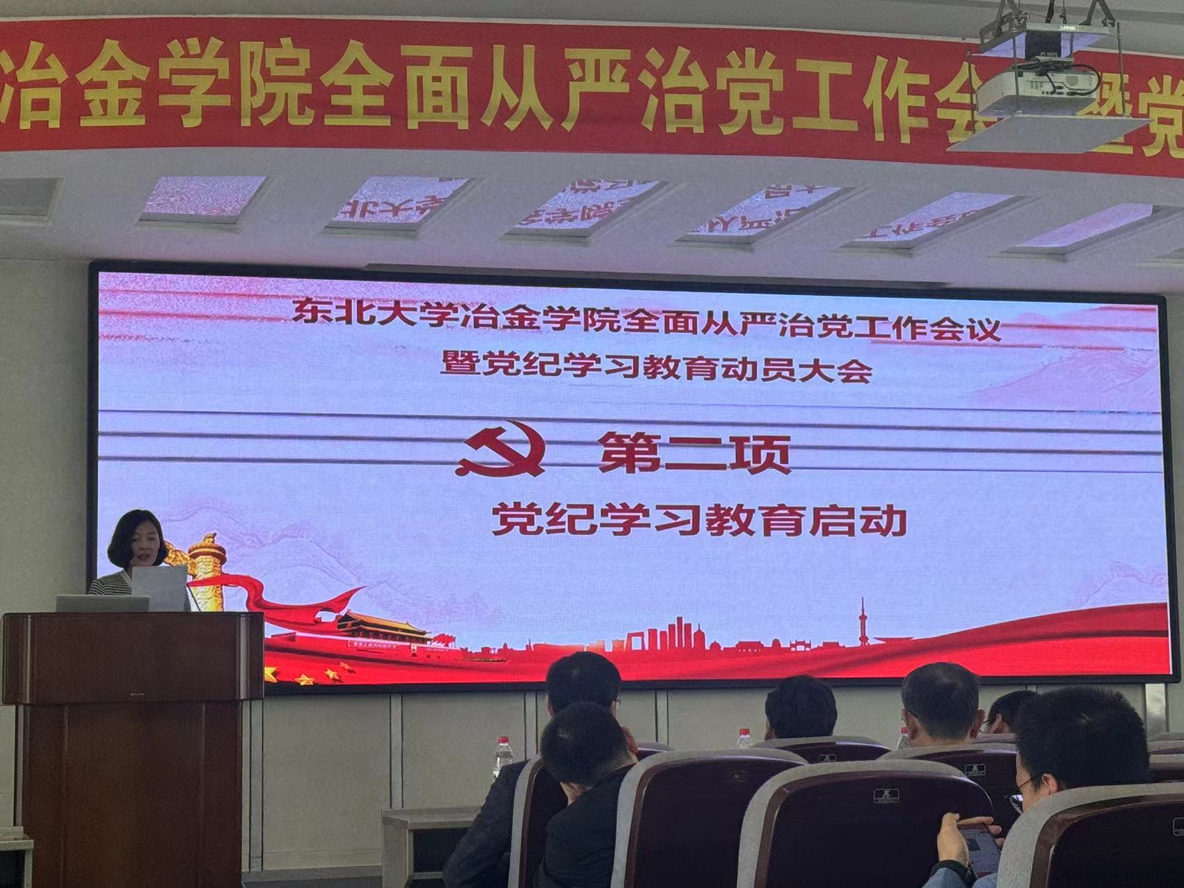 4月24日,冶金学院在EPM实验室四楼报告厅召开2024年全面从严治党工作会议暨党纪学习教育动员大会。学院领导班子成员、党委委员、纪委委员、所长、副所长、教工党总支、党支部支委、部分学生党员代表参会。学院党委副书记兼副院长赵丽娜主持会议。