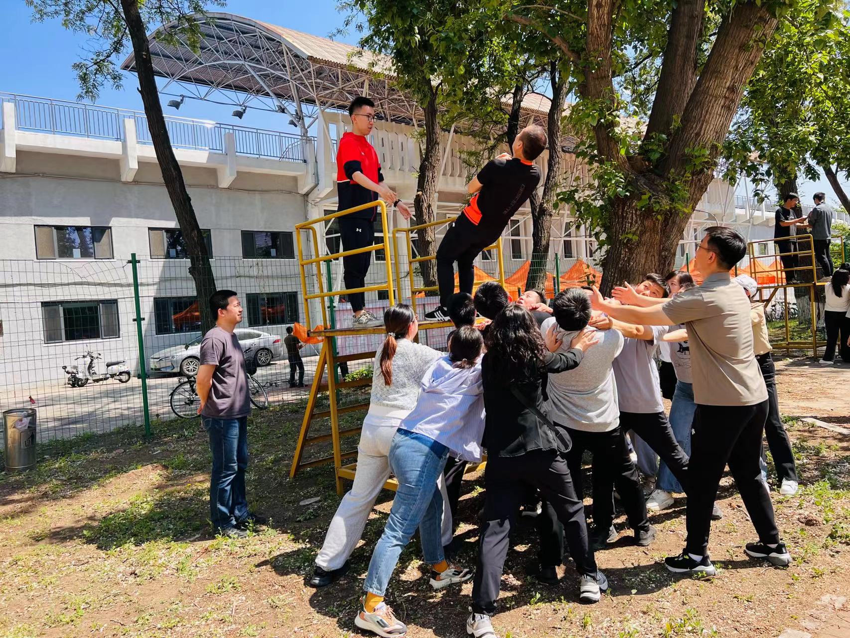 此次拓展训练采取体验式学习方式,以团队为活动主体,从分组设定团队名称、确定团队口号和队歌开始相互熟悉。然后通过“信任背摔”项目,帮助教职工建立信任关系,让大家体验到了相互沟通、分工与执行的重要性,培养了团队协作的能力。机关党委书记郝建山、冶金学院党委书记张耀伟莅临活动现场,为大家加油鼓劲,鼓励大家要相信同伴、战胜恐惧。活动中,大家充分意识到只有团队成员群策群力,依靠集体的力量协同配合,才能最终完成团队的目标。