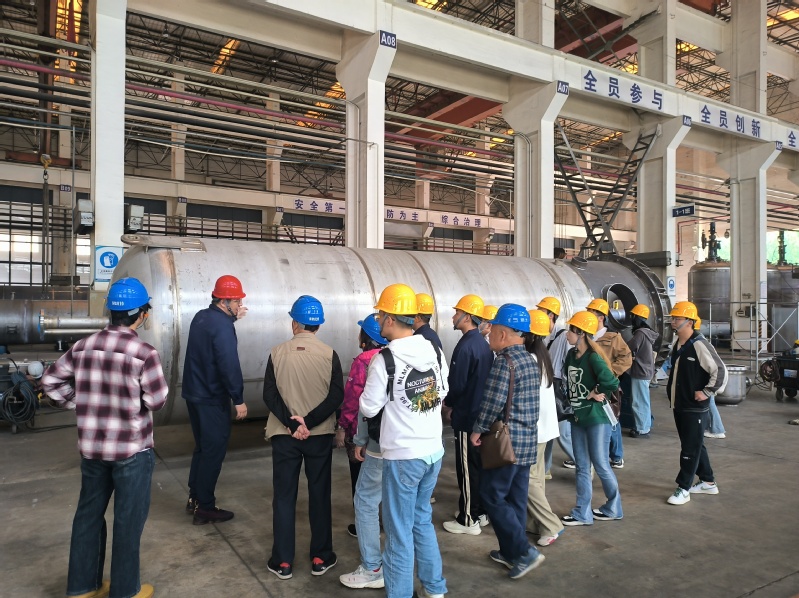 在沈阳东方钛业股份有限公司的生产车间,企业负责人向师生们介绍了有色金属高端装备制造领域的生产知识,东方钛业以钛、镍、锆、钽、铜、铝、不锈钢及其合金与相应复合材料为主,以石油炼化、煤化工、精细化工、水处理、固废处理等节能环保工程设计与制造为龙头,学生们在实地研学中深入了解了高端装备开发、设计、制造、安装的整体工业流程,留下了深刻印象。