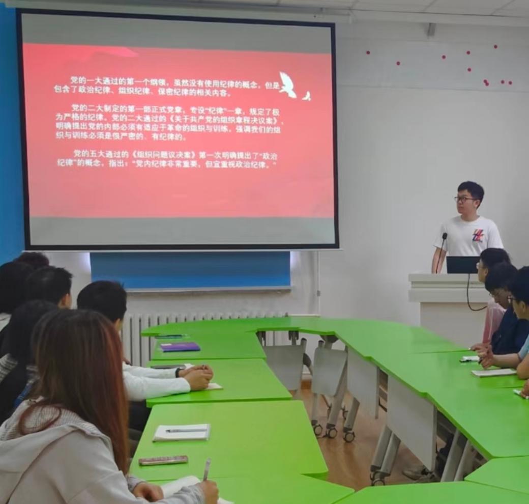 5月13日,支部组织召开党员大会,深入推动党纪学习教育内化于心、外化于行,会议由党支部书记林靖凯同志主讲。林靖凯向大家介绍了党纪学习教育的目的、学习重点以及重要意义,带领党员们共同学习了《中国共产党纪律处分条例》《中国共产党党员网络行为规定》,随后进行讨论。大家一致表示,在加强理论学习的同时更要付诸实践,自觉遵守相关规定。