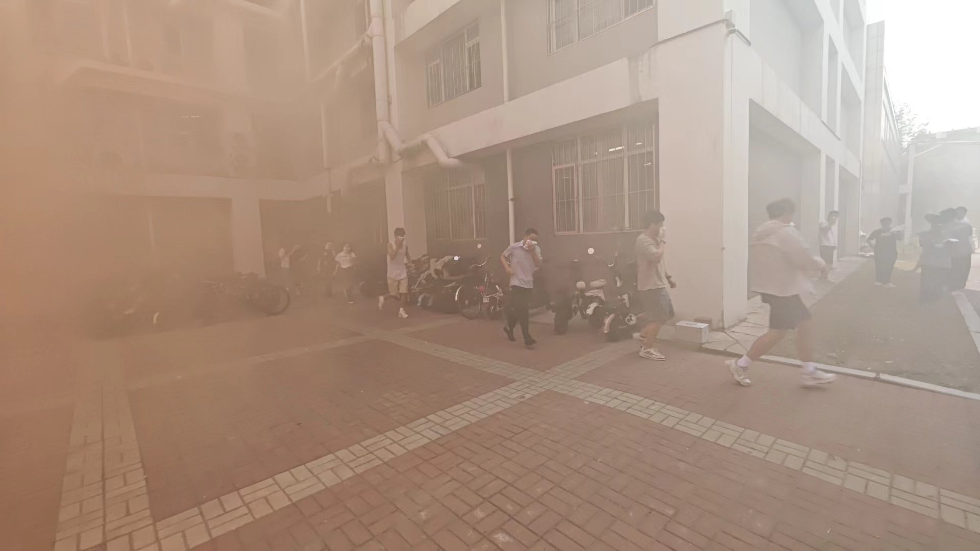 下午3时,随着准备好的烟罐中的浓烟升起,钢铁楼主控室发出消防声光报警,各楼层师生在现场安全员的指挥下,按照消防应急预案,用湿毛巾捂住口鼻,从应急通道有序撤离至安全区域,快速完成演练任务。