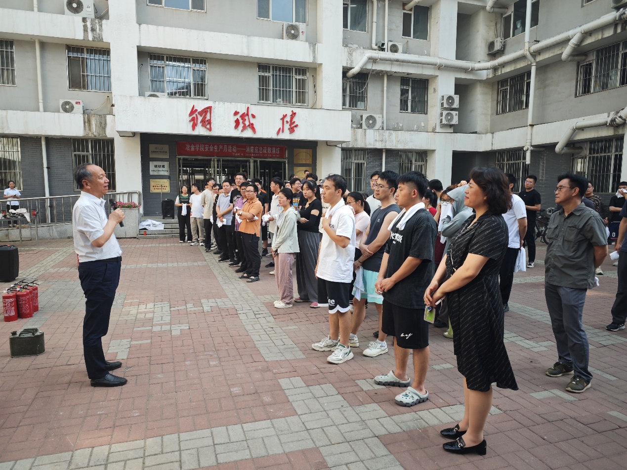 冶金学院党委书记张耀伟在活动中强调全院师生要通过本次演练强化安全技能,提升安全素质,让“人人讲安全、个个会应急——畅通生命通道”的理念深入每个师生员工内心,筑牢安全生产底线,保障学院师生生命财产安全。