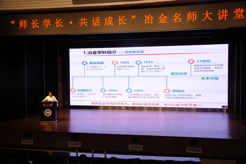 6月26日,冶金学院“师长学长•共话成长——冶金名师大讲堂”活动在汉卿会堂蔡冠深报告厅举办,冶金学院姜周华教授为同学们开展题为“冶金工程与学科——亦古亦今,我的实践与思考”的讲座,学院党委副书记兼副院长赵丽娜、学生工作办公室全体辅导员、冶金学院2023级全体本科生及2020级本科生代表参加讲座,活动由赵丽娜主持。