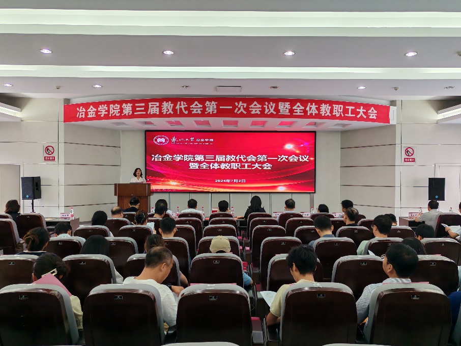 7月2日,冶金学院在EPM四楼报告厅召开第三届教代会第一次会议暨全体教职工大会。校工会主席沙海影,理学院党委书记李晓璐,教代会执委、直属部门工会主席李金丽,机关工会主席沈晓波,艺术学院工会主席单鹏宇,学院、EPM重点实验室领导班子及教职工代表参加会议。会议由学院党委副书记、副院长(兼)赵丽娜主持。