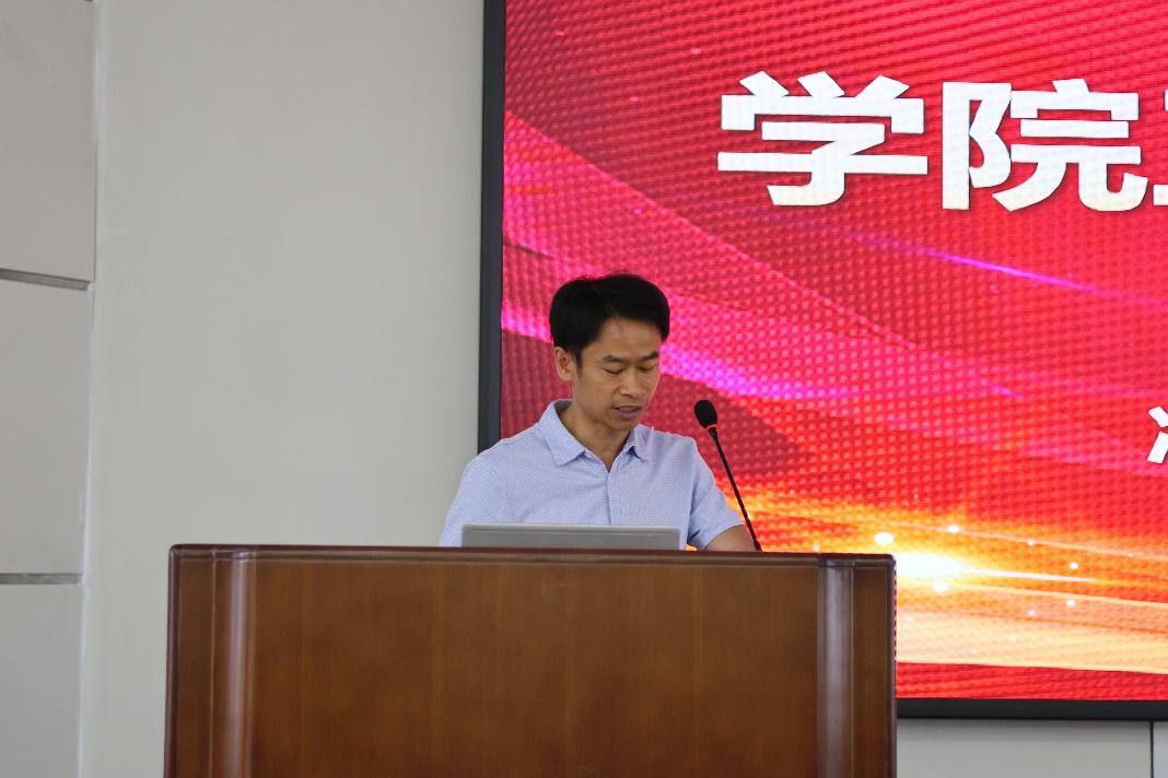 工会主席谢宏伟作工会工作报告,介绍了学院工会开展的“四个一”等重点工作。