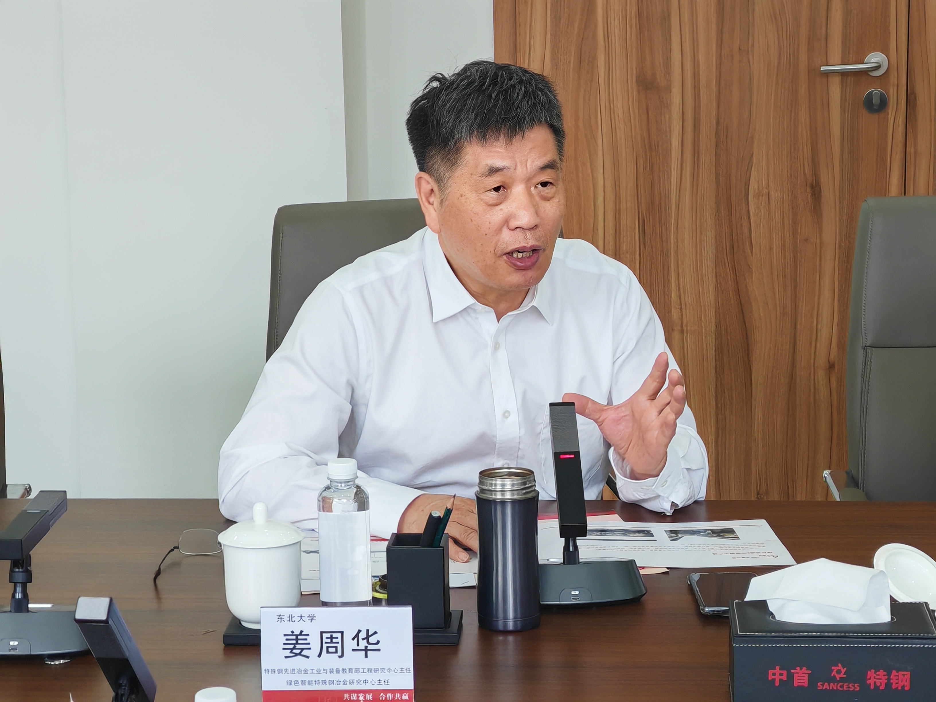 会后,绿色智能特殊钢冶金研究中心主任姜周华教授听取了企业在生产过程中遇到的困难和瓶颈,并从废钢处理、残余元素控制、钢水终点氮含量控制、开发高质量产品、数据驱动赋能、产品个性化智能定制等方面与企业进行了详细的探讨,明确了项目团队和企业科技合作的方向和目标。