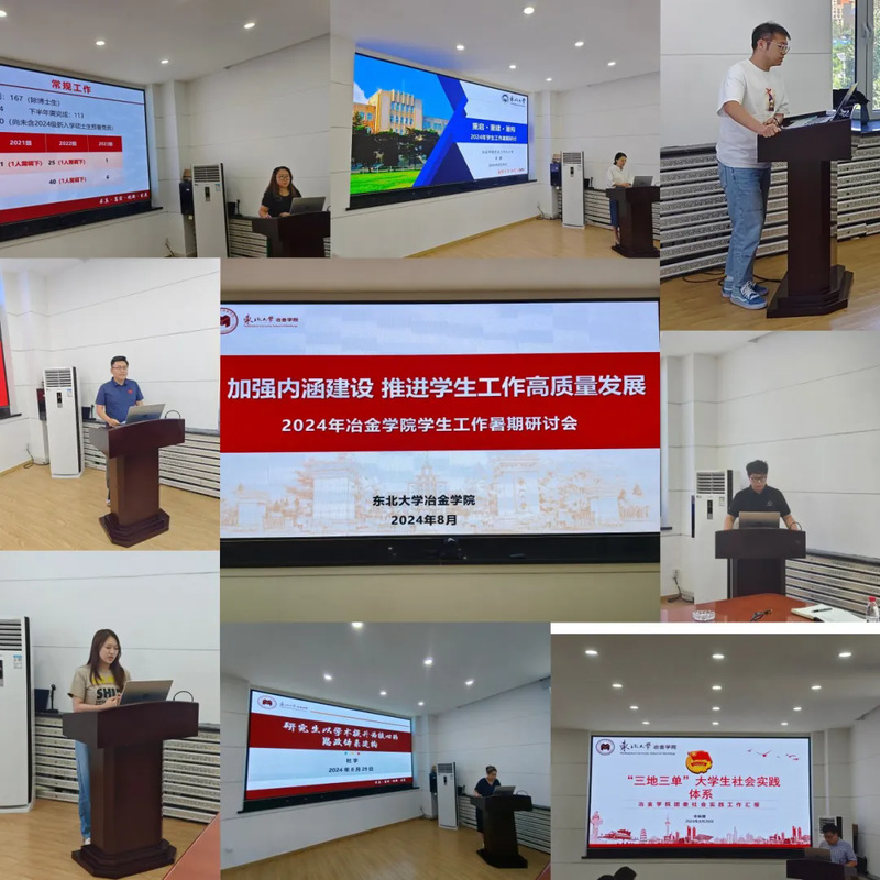 8月29日,冶金学院在冶金学馆301会议室召开主题为“加强内涵建设 推进学生工作高质量发展”的2024年学生工作暑期研讨会。学院党委书记张耀伟,党委副书记、副院长赵丽娜,以及冶金学院学生工作办公室全体老师参加会议。
