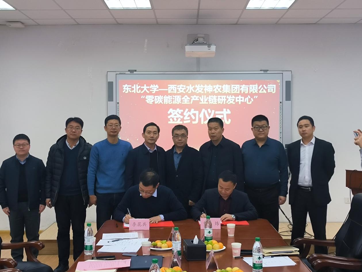 2024年11月7日,东北大学冶金学院与水发神农集团共建“零碳能源全产业链研发中心”签约仪式在东北大学举行。冶金学院院长豆志河,冶金学院副院长李花兵,水发神农集团党委副书记、总经理曹炜,冶金学院热能工程系和新能源系相关教师代表出席签约仪式。
