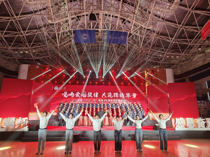 冶金学院师生合唱团精彩演绎了《东北大学校歌》《我们走在大路上》两首歌曲,用坚定而充满力量的歌声表达了对伟大祖国的无限热爱。在演唱过程中,师生用嘹亮的歌声、动人的话剧、优美的舞蹈等展现出东大冶金人热烈赤诚的家国情怀和矢志卓越的昂扬气质,赢得了现场观众的阵阵掌声与喝彩。