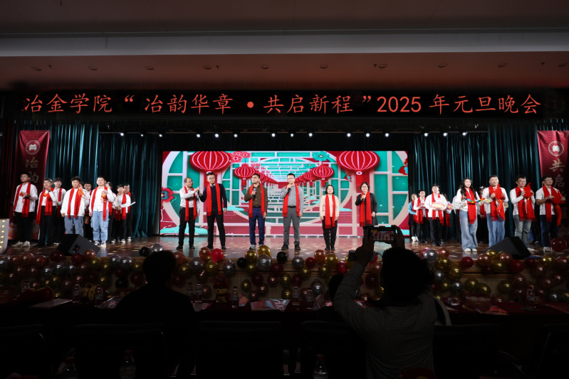 晚会分为“‘冶’炼初心 岁月沉香” “‘金’辉闪耀 青春正燃”  “‘学’海逐梦 扬帆起航” “‘院’望新岁 共启新程”四个篇章,主持人用中英文主持。师生齐聚一堂,共度欢乐时光。晚会节目形式多样,涵盖舞快板合唱等,展现了师生才艺与风采,现场气氛热烈,掌声雷动。