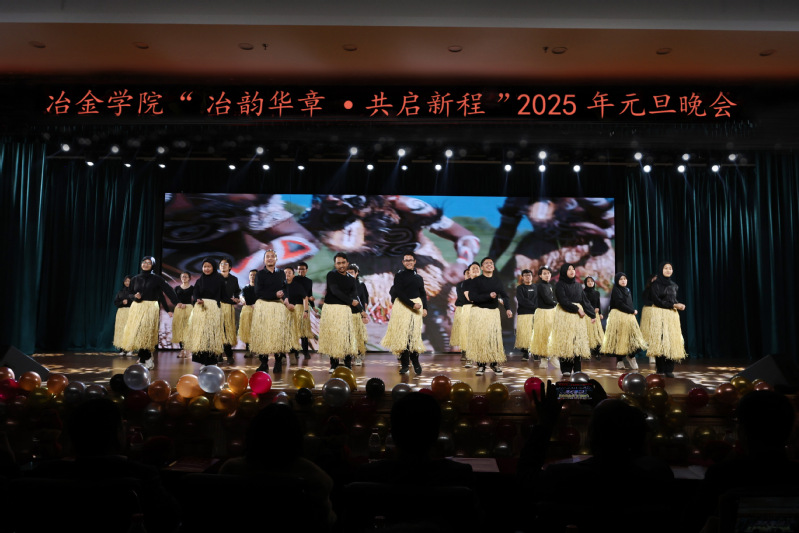 晚会分为“‘冶’炼初心 岁月沉香” “‘金’辉闪耀 青春正燃” “‘学’海逐梦 扬帆起航” “‘院’望新岁 共启新程”四个篇章,主持人用中英文主持。师生齐聚一堂,共度欢乐时光。晚会节目形式多样,涵盖舞蹈、快板、合唱等,展现了师生才艺与风采,现场气氛热烈,掌声雷动。