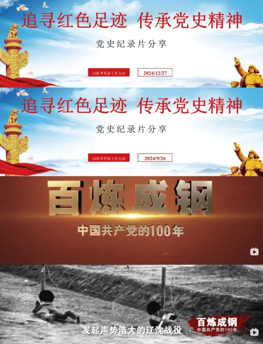 党支部以纪录片为素材学习党史,组织了两次线上观看党史纪录片的活动,并选定了《百炼成钢》这部生动展现中国共产党奋斗历程的佳作进行分享。活动中,党员们齐聚线上,认真观看,共同回顾党的光辉历程,感受革命先烈的英勇事迹。通过观影,大家深受触动,纷纷表示要铭记历史,不忘初心,将党的奋斗精神融入到日常学习生活中,为党和人民的事业贡献自己的力量。