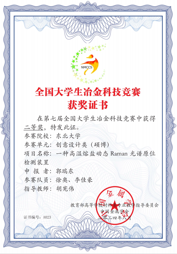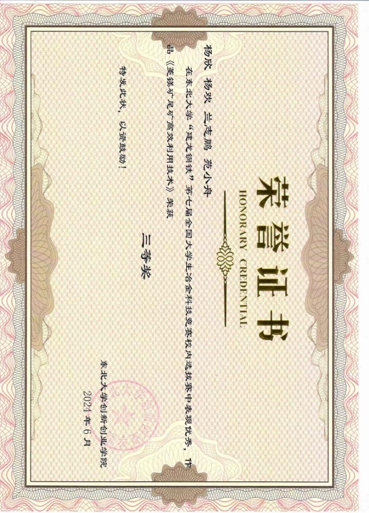 在科技竞赛方面,班级同学勇争上游,徐奥同学在全国大学生冶金科技竞赛中获得国家级二等奖,廖龙杰、丁世平、陈婷同学荣获东北大学首届研究生“双碳”创新与创意大赛校三等奖,兰志鹏,丁世平,陈婷同学获得“建龙钢铁”第七届全国大学生冶金科技竞赛校级三等奖。林俊男同学获得“研途启航”规章制度学习竞赛校级三等奖。