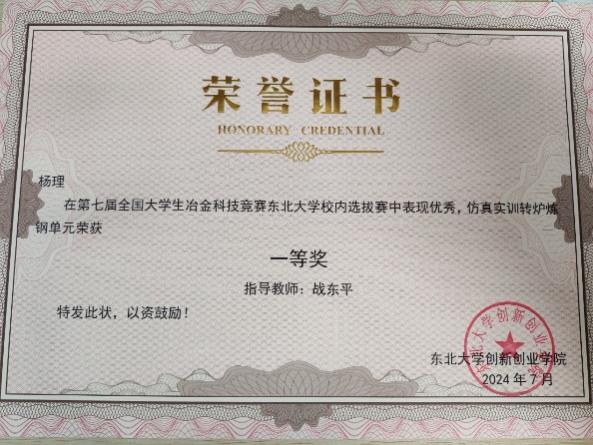 班级积极践行 "五育并举" 理念,班级同学在科技创新领域全面开花。在国际级竞赛——中国国际大学生创新大赛中斩获金奖,在第七届中国大学生冶金科技竞赛国赛中荣获二等奖,校赛荣获一等奖。
