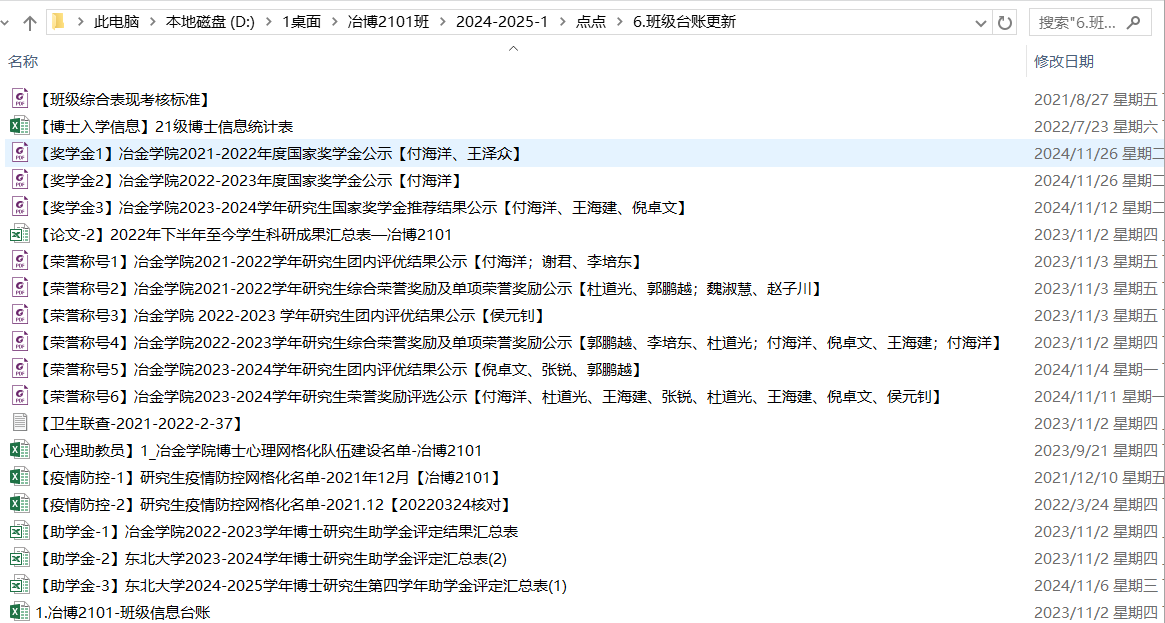 一个优秀的集体离不开完善的制度和标准化的管理,冶博2101班严格落实东北大学及冶金学院的相关管理规定,以《东北大学研究生手册》为准则,确保每一项工作都能做到公平公正公开。针对学生工作的主要痛点难点,班级创新性地建立了班级管理信息、心理管理、学生干部、疫情防控、卫生联查等工作台账,并实施了《班级综合表现考核标准》。这一系列的举措,使得班级在各类学生工作、疫情防控、志愿服务、社会工作等方面都能提前高标准完成,学生工作始终保持在学院前列。