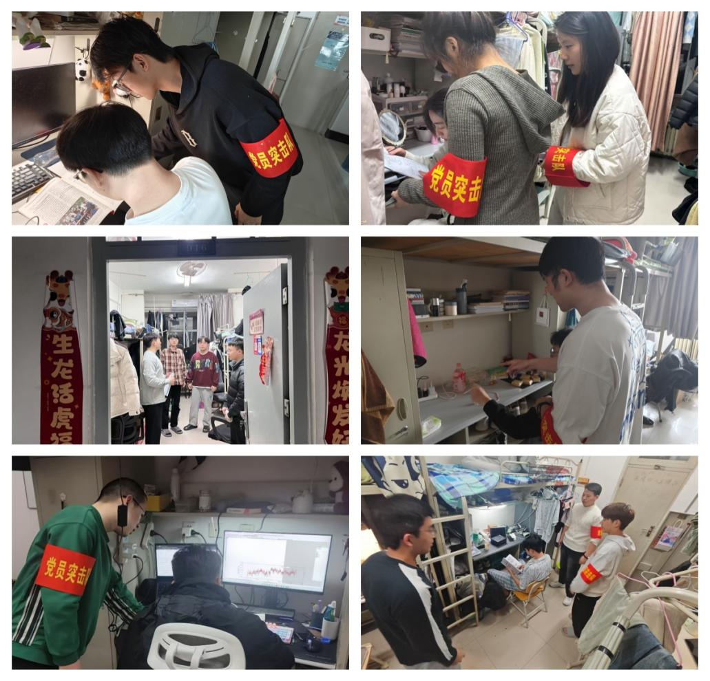 “我是党员,安全守护我先行”是由硕士生党支部支委和党员代表组成突击队,每月到班级的所有寝室走访1次,做好安全提醒,排查安全隐患,提高同学们的安全防范意识,助力校园安全建设,也作为党支部参与学生事务管理、党员联系服务群众的重要形式。