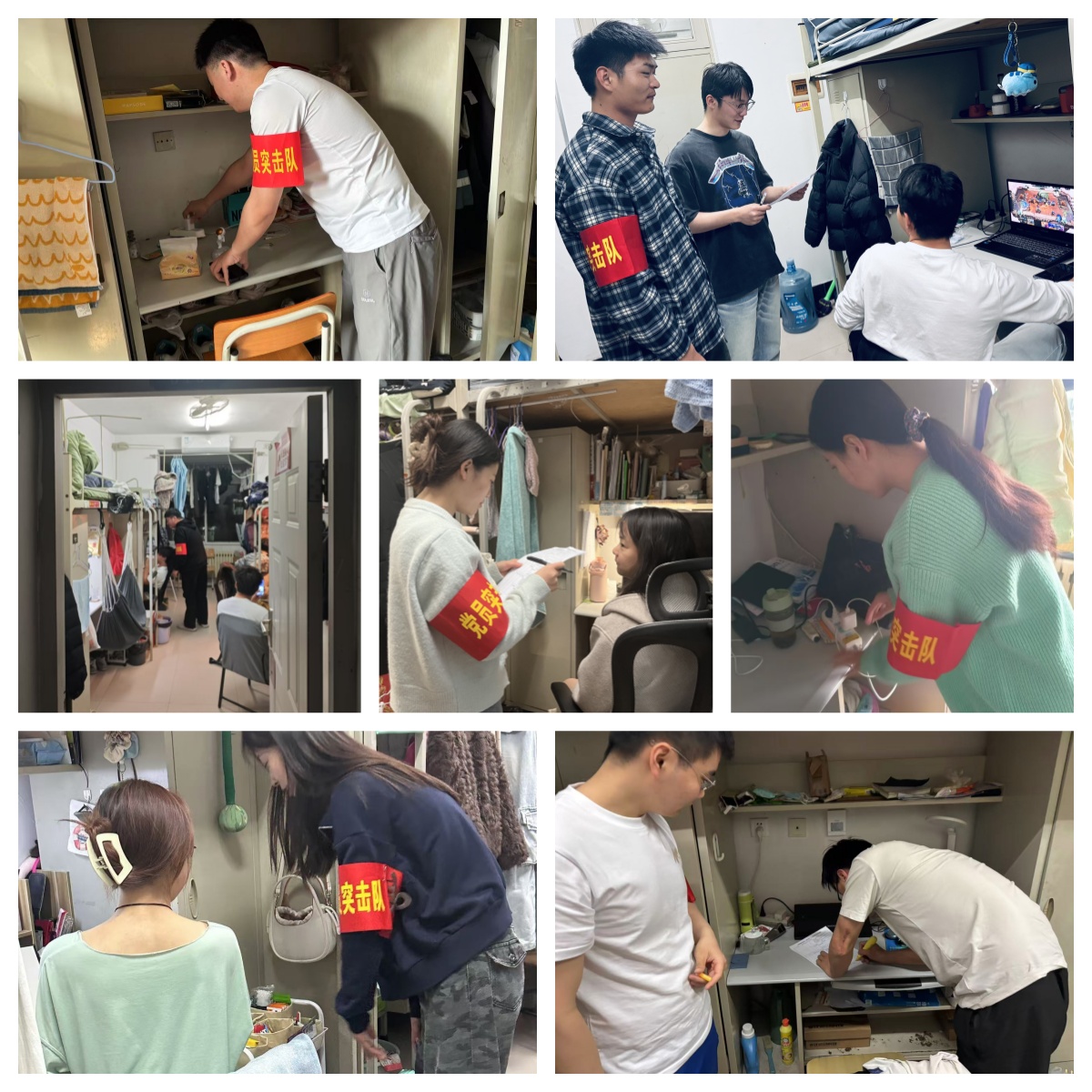 “我是党员,安全守护我先行”是由硕士生党支部支委和党员代表组成突击队,每月到班级的所有寝室走访1次,做好安全提醒,排查安全隐患,提高同学们的安全防范意识,助力校园安全建设,也作为党支部参与学生事务管理、党员联系服务群众的重要形式。