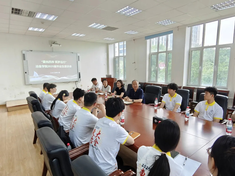 6月12日12时30分,冶金学院于冶金学馆311B会议室举办“鎏光四序 筑梦远行”2025届本科毕业生座谈会。学院党委主要负责人、学生工作主要负责人、本科毕业生辅导员及2025届毕业生代表参加,会议由学生工作办公室主任姜媛主持。