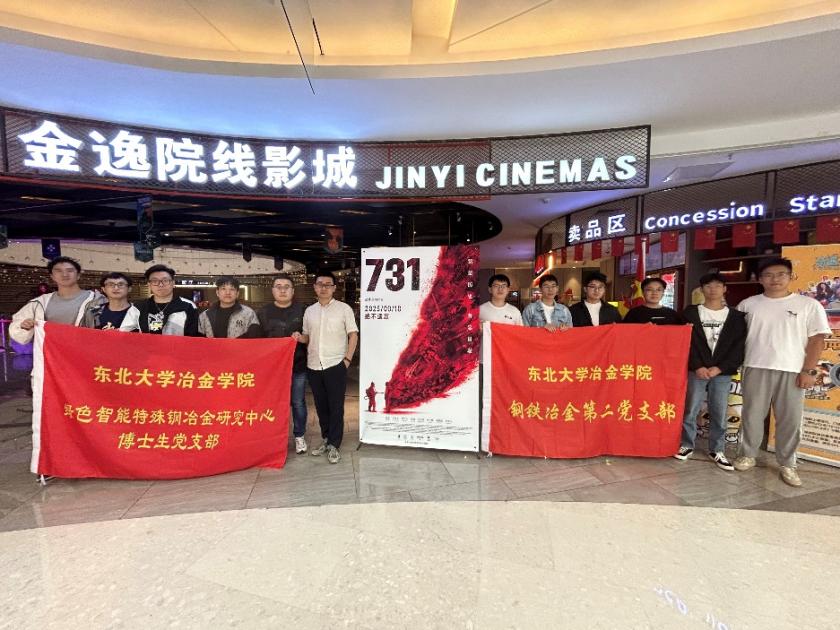 2025年9月18日,冶金学院钢铁第二党支部与绿色智能特殊钢冶金研究中心博士生党支部联合开展勿忘“九一八”主题观影活动,集体观看电影《731》,传承和弘扬伟大抗战精神,铭记历史、缅怀先烈、珍爱和平、开创未来。