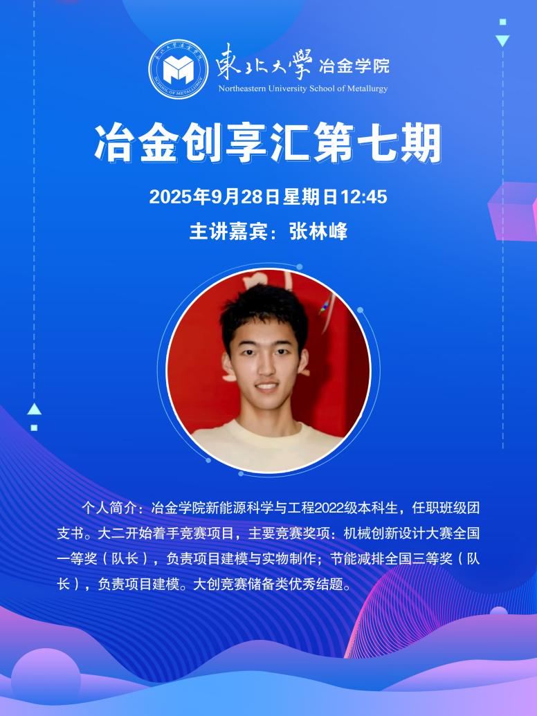 本次创享汇我们特别邀请了三位冶金学院的 “科创达人”: