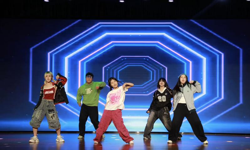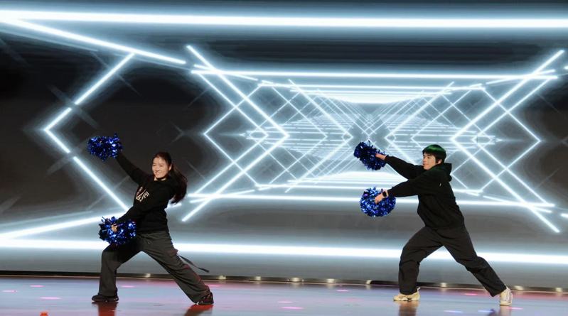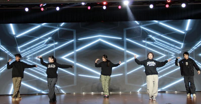 师生同台朗诵《熔铸·百年》,道尽了学院的岁月积淀与深厚情谊。随后的歌曲串烧《爱随天意,翼伴根深》以《落叶归根》《隐形的翅膀》《假如爱有天意》三首曲目深情流淌,而动感十足的舞蹈《Let's go!》则瞬间引燃现场。最终,乐队以《再飞行》《他夏了夏天》两首金曲将晚会推向高潮,激昂的音浪与全场热情共振。